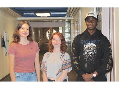 CUTLINE: From left: Genesis Valenzo, Jade Collins and Eugene Taabazuing are among the 19 New Mexico State University students who have benefitted from the Last Mile Fund’s program to bridge the financial gaps to help computer science students complete their degrees. (Photo courtesy Raena Cota)