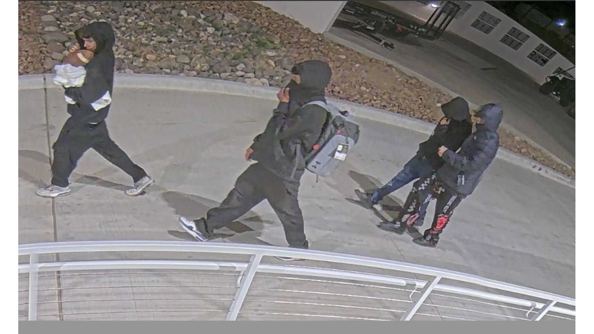 Surveillance cameras captured the suspects entering several buildings including the Pan American Center, Fulton Center, Old Field House and Hall of Legends causing an estimated $3,000 in damages. Tips provided through Crime Stoppers identified the suspects.