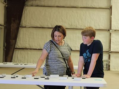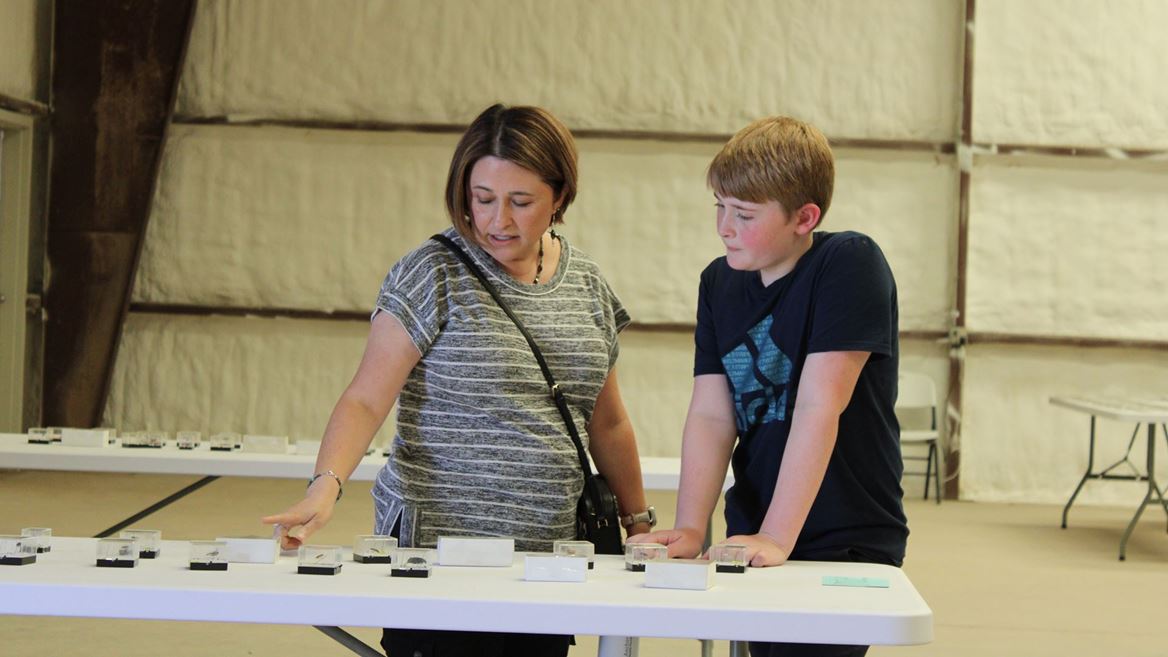 CUTLINE: Oliver Schwebach, right, and Christina Turner identify insects at the New Mexico State University Cooperative Extension Service Northeast and Northwest District Contest June 25 in Union County. (NMSU Photo by Jordan Hamill)