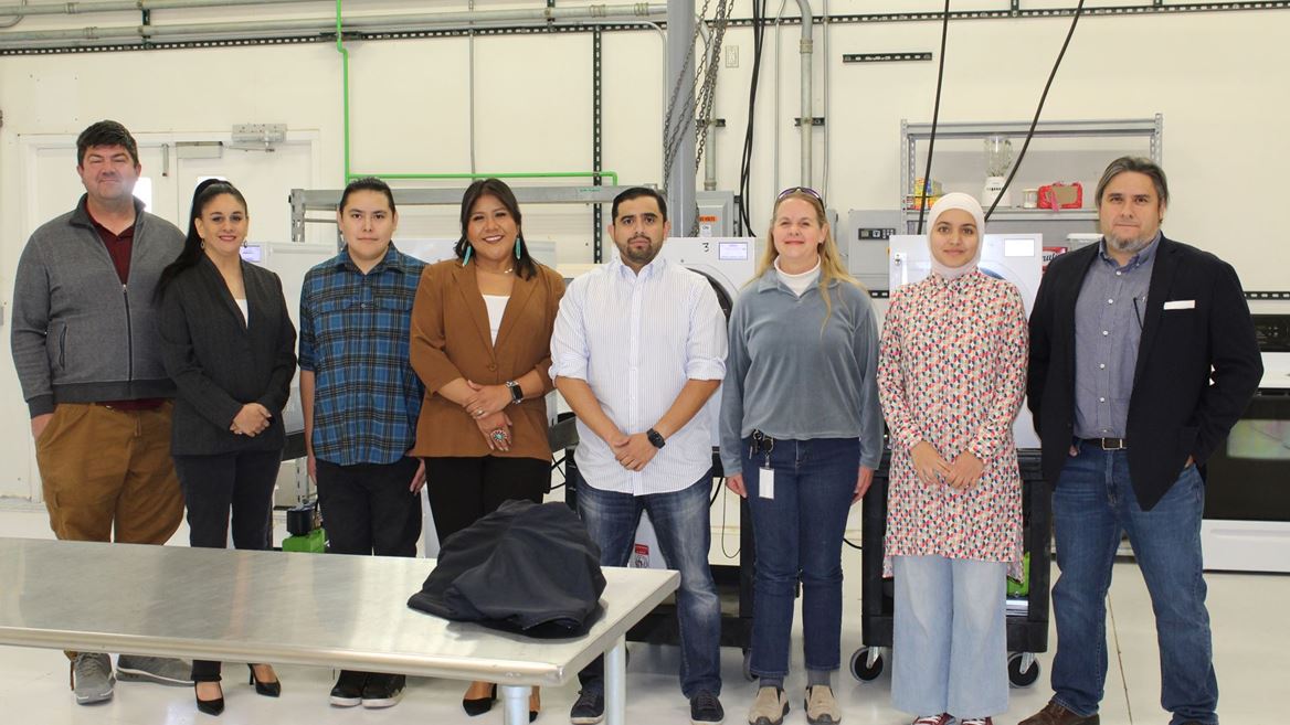 PHOTO CAPTION: The Native American Agricultural Fund recently awarded a grant in support of Native American farmers and ranchers to the American Indian Business Enterprise Center at New Mexico State University. From left, Don Fuqua, professor with the NMSU Center for Supply Chain Entrepreneurship; Brooke Montgomery, program director of the American Indian Business Enterprise Center; Caleb Foreman, AIBE program coordinator; Rachel Livingston, AIBE program specialist; Victor Pimentel, director of the NMSU Center for Supply Chain Entrepreneurship; Rachael Ryan, owner and CEO of Backyard Farms; Marwa Al Aqtash, Backyard Farms lab technician; and Faruq Arsla, professor with the NMSU Center for Supply Chain Entrepreneurship. (Courtesy photo)