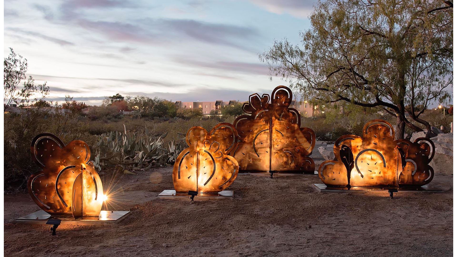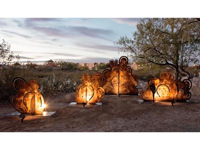 You might want to consider visiting the picnic area at La Buena Vida Park in Las Cruces. As the sun is setting, stop for a moment and look around. You’ll see a softly glowing spectacle, a cluster of sculptures called “Desert Kinship.”