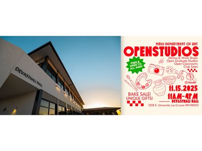 WHAT: New Mexico State University art department will share a hands-on experience with the community with a day of “Open Studios.” Visitors are invited to participate in workshops, guided tours and even do some holiday shopping via the student art sale. The event is free, family friendly and open to the public.