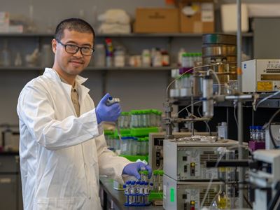 CUTLINE: Runwei Li, assistant professor in the Department of Civil and Environmental Engineering, is one of the organizers of the “PFAS in New Mexico: What's in Our Water – And What Comes Next?” talk at New Mexico State University taking place beginning at 9 a.m. May 1 in Hernandez Hall. (NMSU Photo by Vladimir Avina)