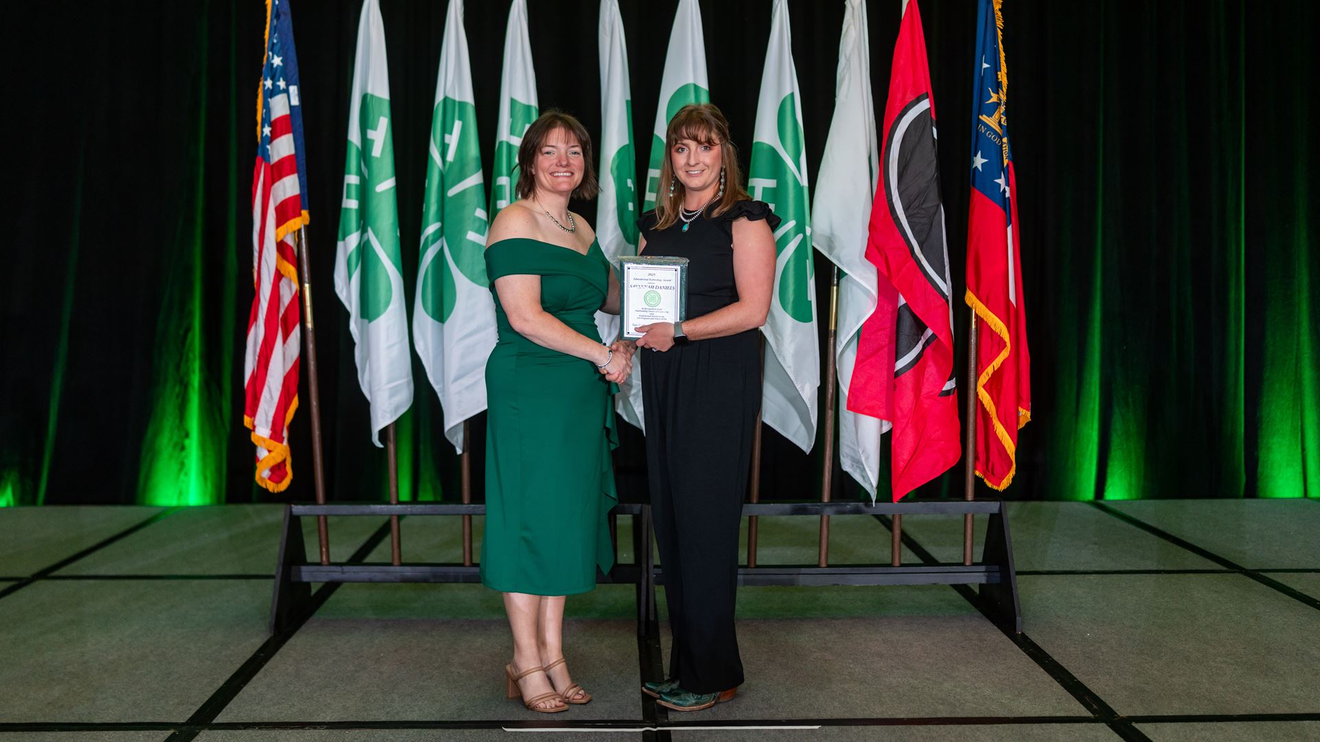 CUTLINE: New Mexico State University’s Cooperative Extension Service 4-H agents and 4-H youth development department staff were honored at the 2025 National Association of Extension 4-H Youth Development Professionals annual conference in Atlanta, Georgia. Hildago County Extension Program Director and 4-H Agent Savannah Daniels, right, accepts the national award for educational technology. (Courtesy photo)