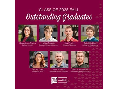 Honorees will be recognized during NMSU’s fall 2025 commencement ceremonies Friday, Dec. 12 and Saturday, Dec. 13 and celebrated at the Outstanding Graduates luncheon hosted by the NMSU Foundation Dec. 12. Their stories and achievements also will be featured on the Foundation’s website at AlwaysAnAggie.org and across NMSU Alumni social media platforms, @NMSUAlumFriends.