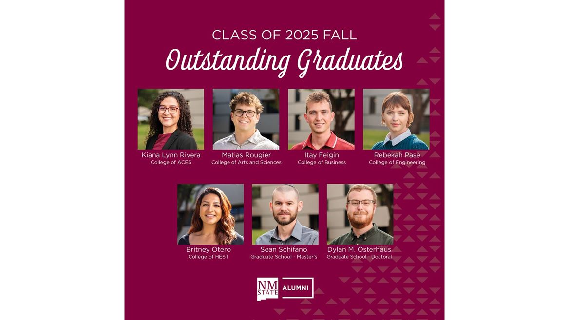 The New Mexico State University Foundation proudly announces the recipients of the fall 2025 Outstanding Graduate Award, recognizing seven exceptional students: one from each academic college and two from the Graduate School.