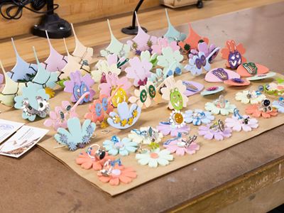 “I’m studying entomology as well as art,” said Matthew Cota, a senior set to graduate this semester. “I love insects and finding the intersection between those two disciplines. This sale has taught me a lot more about making work that is sellable and wearable as jewelry rather than an art piece—are they comfortable and will people actually wear them?”