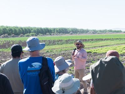 PHOTO CUTLINE: Community members listen to a lecture on local agricultural research projects during the New Mexico State University Leyendecker Plant Science Center Field Day in May 2024. NMSU has once again earned the Carnegie Community Engagement Designation, an elective designation awarded by the American Council on Education and the Carnegie Foundation for the Advancement of Teaching that highlights an institution’s commitment to community engagement. (NMSU Photo by Josh Bachman)