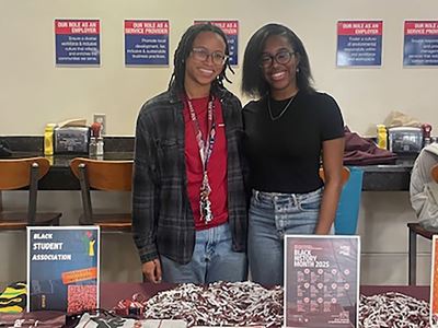 Cutline: Angel Ennis, left, president of the Black and Brown Queer Alliance at New Mexico State University, and Aaliyah Walker, president of the Black Student Association at NMSU, share information about their organizations during a Black History Month event in 2025. (Courtesy)