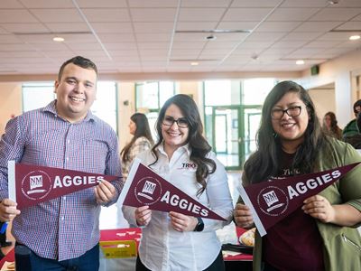 CUTLINE: On the Las Cruces campus, New Mexico State University will host the seventh annual first-generation celebration from 10 a.m. to 2 p.m. Wednesday, Nov. 12, at Corbett Center Student Union. NMSU TRIO Student Support Services Program Director Bernadine Booky, center, along with Francisco Soto, left, and Monica Cobos welcomed students to a previous first-generation celebration. (NMSU photo by Josh Bachman)