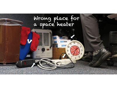 CUTLINE: Portable heaters are allowed on campus but not propane heaters. No extension cords should be used with these heaters and no daisy chaining (linking extension cords to other extension cords) should ever be used. Always keep combustibles at least three feet from a portable heater. (NMSU Fire Department photo)